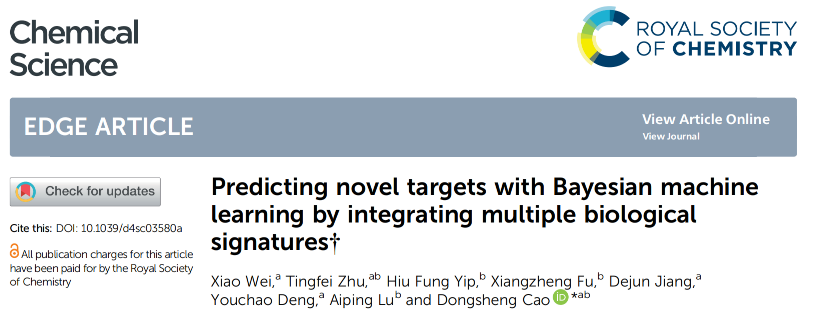 近日,伟德中国官网入口曹东升教授团队在国际权威期刊《Chemical Science》(中科院一区,NI指数期刊)发表了题为“Predicting novel targets with Bayesian machine learning by i…