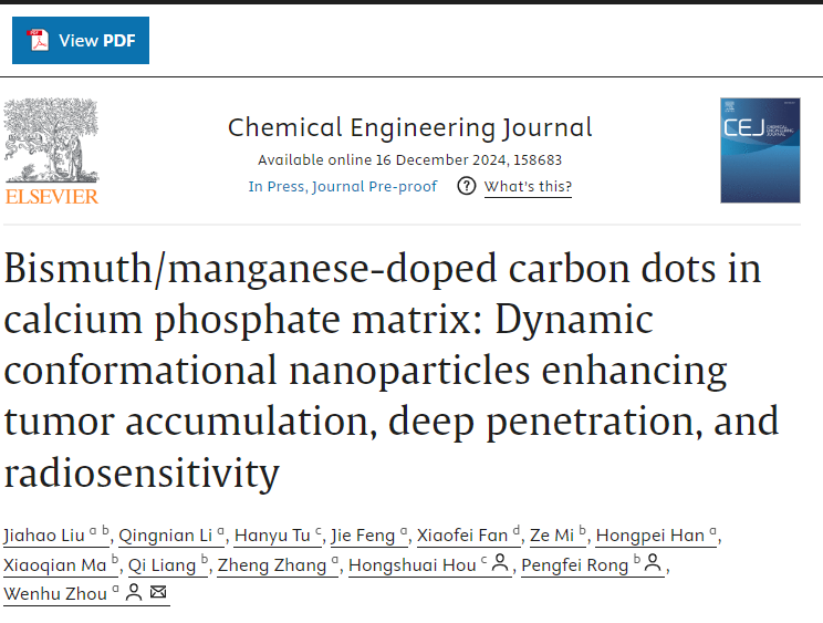 2024年12月,伟德中国官网入口周文虎教授团队与伟德中国官网入口湘雅三医院容鹏飞教授团队,伟德中国官网入口化学化工公司侯红帅教授团队在Chemical Engineering Journal(中科院1区Top期刊,IF=13.…