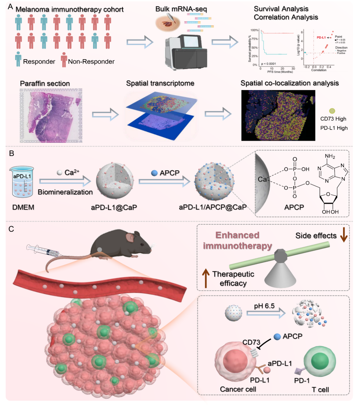 近期,公司周文虎教授团队与伟德中国官网入口湘雅医院陈翔教授团队联合在国际知名期刊《Advanced Science》(IF=14.3)上发表了题为“Co-Delivery of aPD-L1 and CD73 Inhibitor Using Calciu…