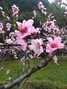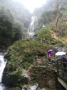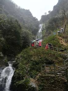 周洛大峡谷是中南地区最大自然瀑布群落,景区内负氧离子极高,具有保健疗养功效,是天然氧吧。景区有各种野花,一路上女老师们欣赏了黄灿灿的油菜花、野生樱花、粉嫩的桃花,瀑布周围开满了紫玉兰花,将大峡谷装扮得热闹非凡,仿似置身世外桃源。
