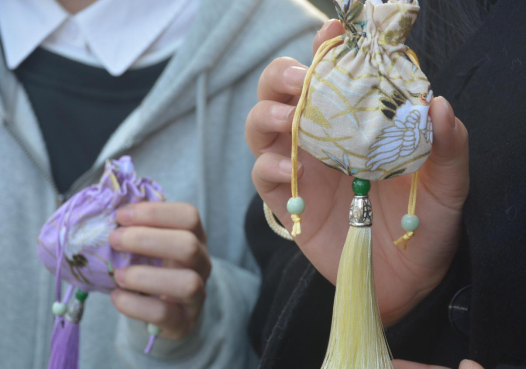 提问结束后,同学们参与到现场的书签和香囊制作的活动环节中,拿起毛笔,在书签上写下对中医药的热爱和对未来的憧憬;做一份专属香囊,装入的不仅仅是各色的中草药,更是对生活的热爱与企盼。空气中弥漫着艾草和茉莉等药草混合的香气,给大家留下深刻的回忆。