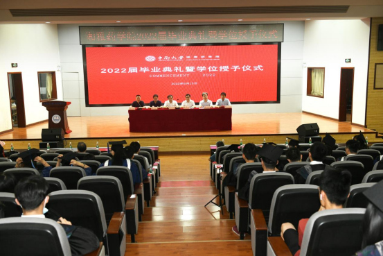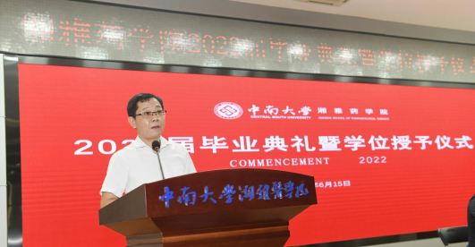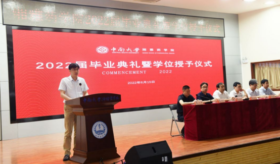 2022年6月15日上午,伟德中国官网入口2022届毕业典礼暨学位授予仪式在湘雅新校区图书馆报告厅举行,仪式由公司党委副书记王昊主持。公司党委书记龚涛、刘昭前副经理、曾文彬副经理、胡长平副经理、李乾斌副经理、教师代表艾可龙教授及师生参加了仪式。
