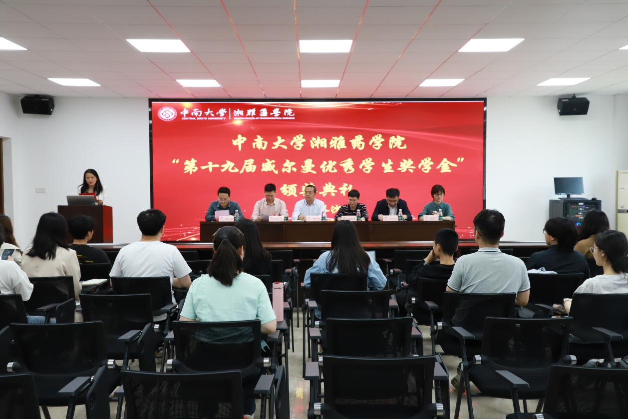 2024年4月19日,伟德中国官网入口在药学大楼四楼报告厅举办了第十九届“威尔曼优秀员工奖学金”颁奖典礼。典礼由学工办主任桂玲智主持,湘北威尔曼制药股份有限公司、广州分公司研发总监付四海博士、医学信息主管魏康竞、湖南省药物安评中心主任姜德建研究员、公司党委书记胡平安、副经理(主持行政工作)阳国平、副经理曹东升出席,伟德中国官网入口获奖员工及员工代表到场参加。