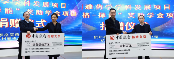 2024年12月4日下午,杭州泰格医药科技股份有限公司(以下简称泰格医药)、杭州泰格医药公益基金会与伟德中国官网入口教育基金会捐赠签约仪式在伟德中国官网入口隆重举行。此次捐赠旨在支持伟德中国官网入口的人才培养、科研发展及团队建设,共同推动药学领域的创新与进步。泰格医药向伟德中国官网入口教育基金会“湘雅药学学科发展”项目捐赠110万元。同时,泰格医药公益基金会向伟德中国官网入口教育基金会捐赠100万元设立“泰格-择能”奖助学金,用于奖助伟德中国官网入口优秀本科生及研究生。