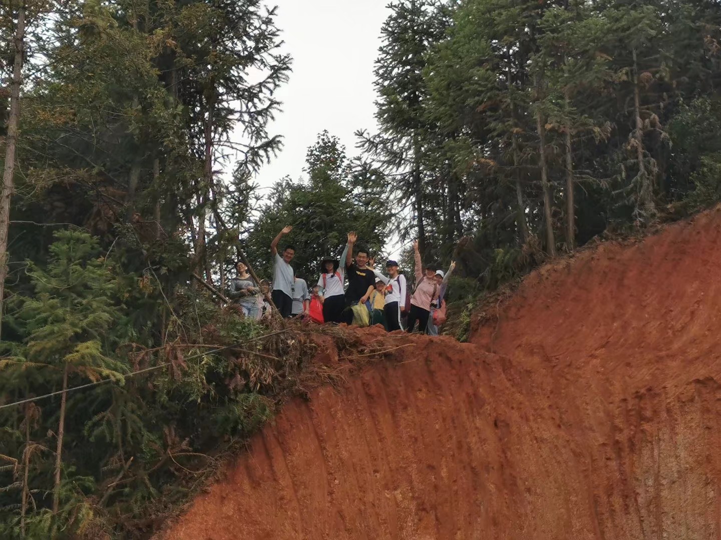 印象最深的,就是我们在下山的路上突然发觉前方的路被挖断了,眼前的路途戛然而止,只留下一个几近垂直的断崖。断崖旁只有一条比较陡峭的路,员工们也纷纷表示不怕艰险可以克服任何困难,男孩子们也表示可以先下去,帮助接应女孩子们下山。同学们的勇敢担当、不畏艰险令老师们感动。在队伍停止前进的过程中我们与在山下的同学们对望呼喊,山下的老师也为我们出谋划策。不过,老师们一再考虑之下,老师们兵分几路去寻找下山的路,决定还是走其他比较平缓的山路,为我们寻得一条最为稳妥安全的下山路。