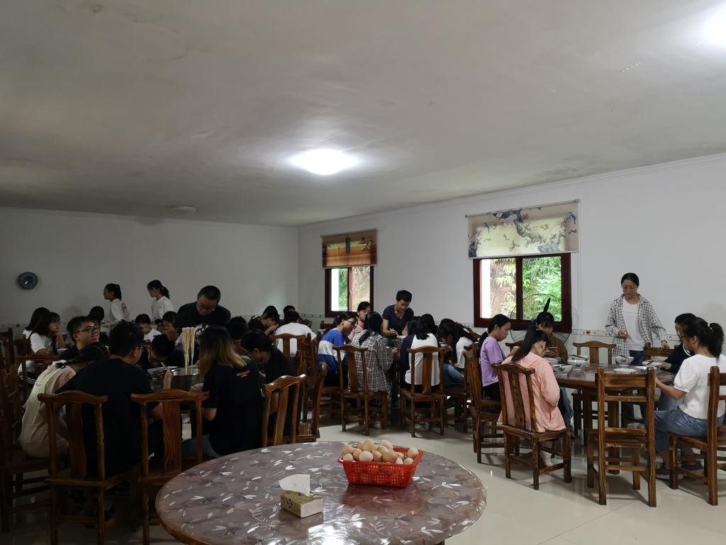 9月11日,员工是10:30从考场上出来拍完合影就上车的,11:00准时出发,到达贾岭药博园的住地已经13:30左右,好在之前就已经分配好了房间,车至半途通知基地负责人打开每间房间,准备好饭菜,所以一到基地,各组领完工具就直接进房间放行李,然后进餐厅午饭,稍作休息,14:30再集合时,个个元气满满,对接下来的学习充满期待。
