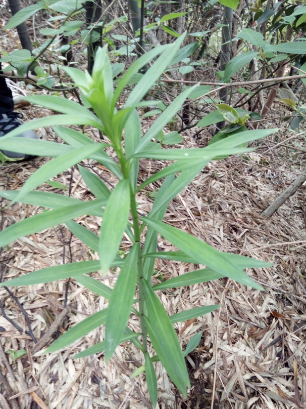 看过提琴形叶的白英后,我们上了一条小路采竹笋,不亦乐乎。期间发现了黄精,互生叶,后来又见到轮生叶的,剑形,平行脉序,叶腋间有黄花,块状根,具有润肺的功效,还有百合,百合科的,轮生针形叶,目前未见有开花的,挖出根茎后见到鳞茎,层层包裹,有点像大蒜子,颜色雪白,煞是惹人喜爱,许多同学都要求要带回去做盆栽。与黄精有些相似的还有万寿草,与互生叶的黄精叶相似,但是开的黄色钟形花开在茎的顶端。可见同科属各种植物的差别有的不是很大,一定要掌握其关键的差别,以便于高效准确地鉴定出一种药用植物的归属。高效的前提是渊博的学识,还是要平日里下苦功夫,才能做到养兵千日用兵一时。