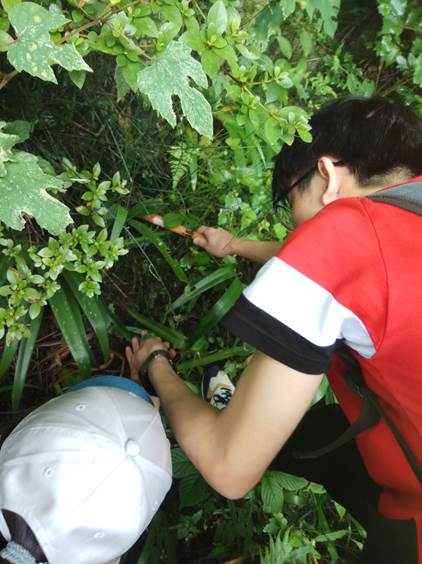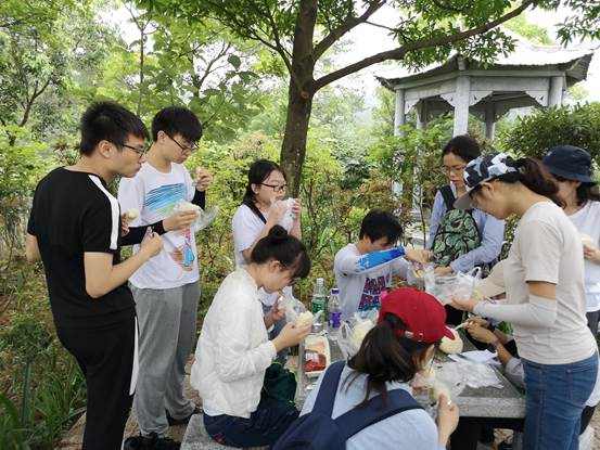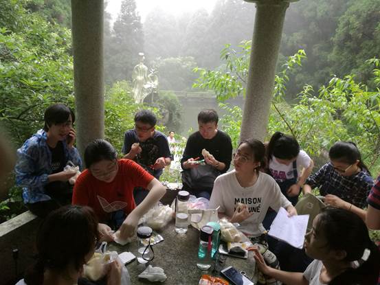 实习的第二天,是一整天在山里转,基地食堂配备了路餐:馒头包子榨菜鸡蛋。虽然少了往年自带路餐的丰富,但觅一清凉悠静处围在一起就着美景佐餐的随性和温馨的氛围还在。