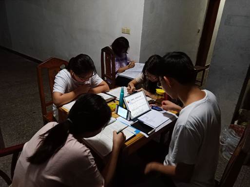 摆好四方桌,就着地坪雪白的路灯认真学习起来。