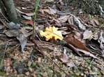 当我们迈着有些疲惫的步伐继续在山上摸索的时候,不知是谁的一句“看,这是不是灵芝!”重新燃起了大家伙儿的热情,爬了好久的山,付出的辛苦总算是不白费,一阵狂喜之后的我们纷纷和灵芝合影留念,欢笑声中我们继续往前走。