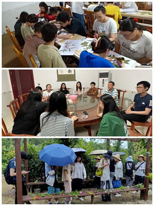 空闲时间里,我们在会议室制作植物标本,欣赏标本完成后的样貌;进行了“圆桌会议”,雷老师很亲切的给大家沏茶喝,我们围坐在一起,探讨着未来的发展与规划。老师人很好,安排行程时非常体察大家的情绪,完全打消了我对陌生环境与老师的不适应和对上山的恐惧,几天下来,我们的小分队已经其乐融融。最后一天是一个下雨天,我们打着伞在凉亭走廊中认药,雨声淅淅逐渐消散,我们的实习也将告一段落。