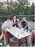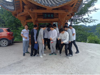 在基地门口的思邈亭下,我们拍下了第一组的第一张大合影