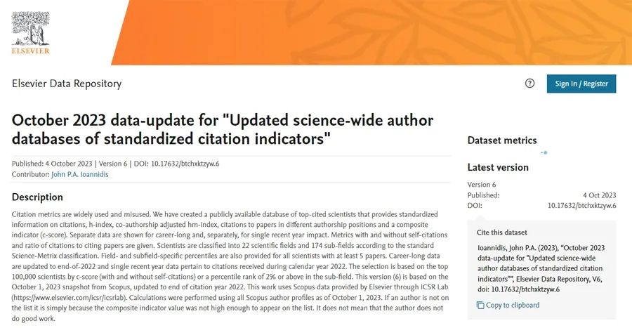 据悉,全球前2%顶尖科学家榜单由斯坦福大学发布,从近700万名科学家中遴选出世界排名前2%科学家,分为终生科学影响力排行榜年度科学影响力排行榜两个榜单。该榜单基于Scopus数据库,依照科技工作者科研产出、Google Scholar Metrics期刊评分、H指数、成果被引、成果中作者排序位置等参数进行综合评估,分为22个领域和176个子领域,旨在提供一个科学家长期科研表现的衡量指标,能够更客观、更真实地反映科学家的影响力。